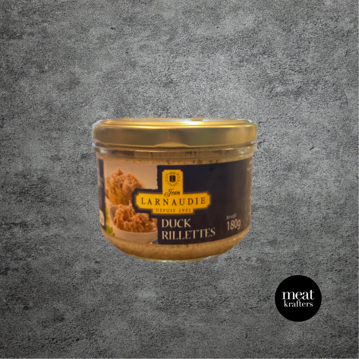 Larnaudie Duck Rillettes (180g) offers a rich, savory spread made from tender duck meat, slow-cooked to perfection. Infused with aromatic herbs and spices, it boasts a melt-in-your-mouth texture. Ideal for pairing with crusty bread or crackers, this gourmet delicacy enhances any charcuterie board. Enjoy it chilled for the best flavor, making it perfect for appetizers or a luxurious snack.